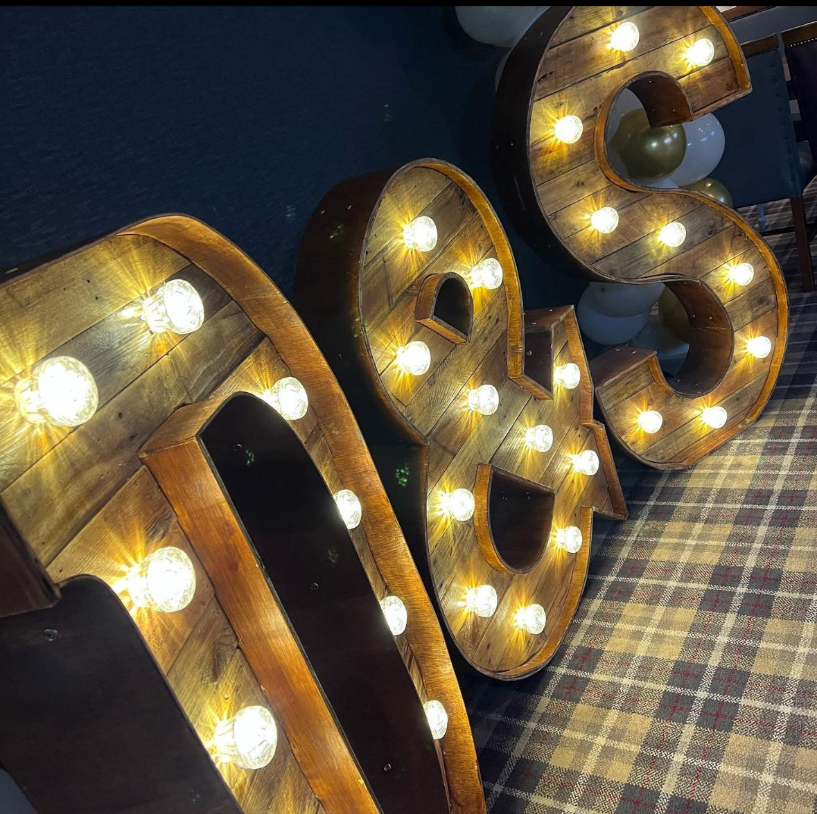 OUR RUSTIC LETTERS ! THESE CAN BE SUPPLIED WITH OR WITHOUT LIGHTS !